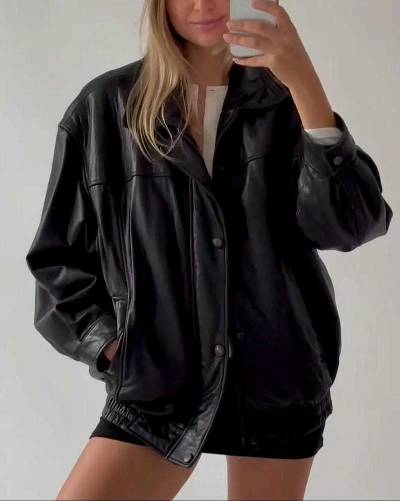 Tailored from 100% real leather, the jacket features a sharp collar, front flap pockets, and a structured cropped silhouette that effortlessly complements any outfit—from casual denim to sleek tailored pieces. The smooth texture and soft inner lining ensure everyday comfort without compromising on bold, elevated fashion.
