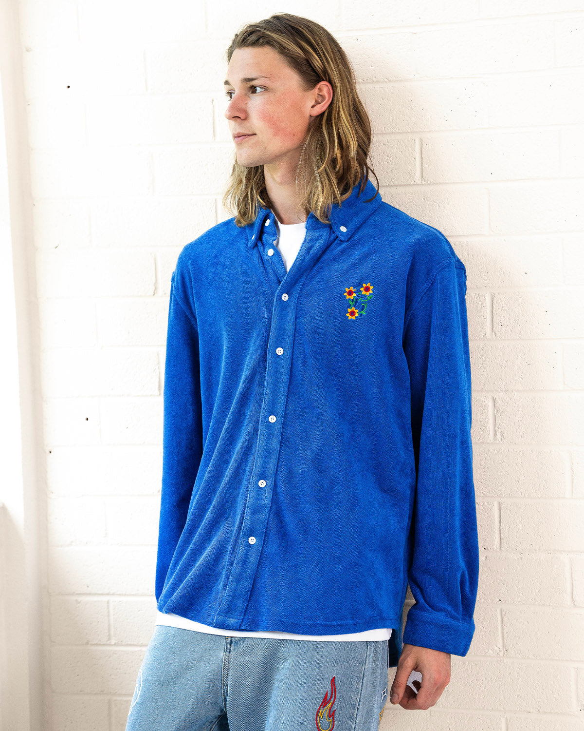 - Terry Towel Cotton Long Sleeve Button-Up Shirt